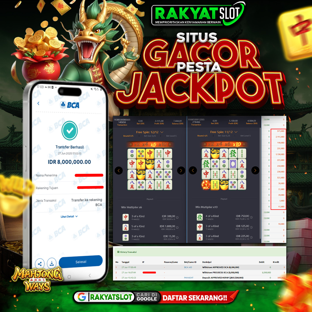 RAKYATSLOT sendiri dikenal sebagai situs slot online terpercaya dengan RTP tinggi dan sistem permainan fair play. Proses withdraw sebesar Rp 18.000.000 yang dilakukan oleh ID F**HA**09 pun berjalan cepat, aman, dan tanpa kendala. Hal ini menegaskan bahwa RAKYATSLOT benar-benar mengutamakan kenyamanan dan kepuasan para pemain.