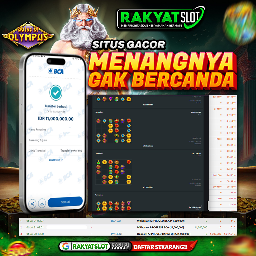 Dengan pilihan game beragam seperti Gates of Olympus, RAKYATSLOT terus berkomitmen memberikan hiburan digital terbaik. Dukungan sistem canggih dan keamanan data juga menjadi alasan mengapa banyak pemain mempercayakan waktu bermain mereka di sini.